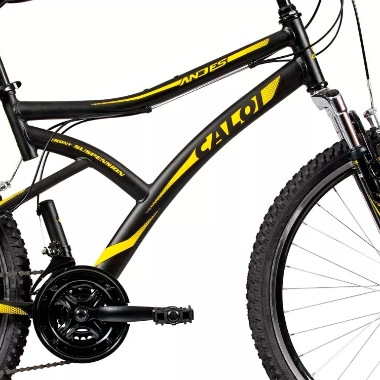 Bicicleta mtb caloi andes aro 26 quadro aço 21 marchas. 12x de r 66 58 sem juros. Quadro de aço aro 26 com suporte para freios v brake. Idealizada para terrenos levemente acidentados e para o asfalto essa bicicleta aro 26 traz quadro com design arrojado grafismos modernos suspensão dianteira eficiente selim com quick release e freio v brake em alumínio garantindo maior leveza para. Quadro de aço tamanho 18 aro aero parede dupla suspensão dianteira selim com quick release alavanca de freio em alumínio freio v brake em alumínio trocador grip system 21 velocidades.