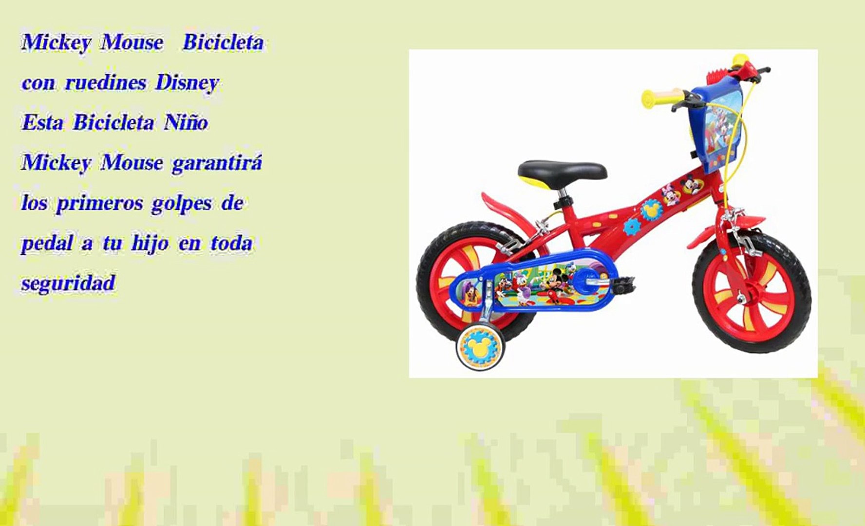 Bicicleta de mickey mouse. Sólo queda n 1 en stock. Con diseño de mickey y colores suaves muy válido para niño o niña. Imagen en la parte delantera ruedas de apoyo para niños incluye guardabarros.